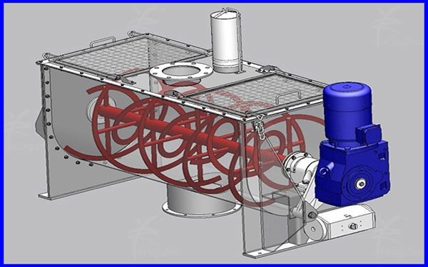 卧式螺带混合设备内置的双螺带或三螺带根据物料特性而定,螺带的设计能产生高效的混合效果。